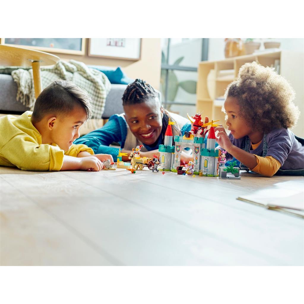 Kinderen vanaf 4 jaar beleven allerlei avonturen waarbij ze leren communiceren en verhalen vertellen met dezeLego Disney 10780 Mickey Mouse Kasteel set: een kasteel met torens, 4 kleine modellen, minifiguren van Mickey Mouse, Minnie Mouse, Katrien Duck en Donald Duck, een bouwbare draak en een paardenfiguur. Alle minifiguren dragen voor het eerst fantasykleding. Deze set zit vol inspirerende details die kinderen een leuke speelervaring geven. Elk zakje bevat de stenen voor een compleet model dat ze kunnen bouwen om snel te gaan spelen. Er zijn ook 4 startstenen om het bouwproces een vliegende start te geven. Leuk voor het hele gezin. Aan de slag gaan is makkelijk, want naast instructies met afbeeldingen heeft deze set interactieve digitale bouwinstructies in de gratis bouwinstructies app waarmee kinderen hun model kunnen visualiseren tijdens het bouwen.