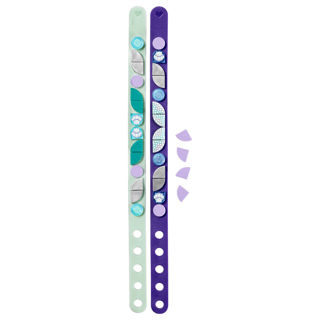 Steel de show met deze coole armbanden of deel er een met je beste vriendin! Open het zakje met Zeemeermin armbanden, leg de armbanden met één rij noppen plat neer en klik de tegels erop. Kijk op de verpakking voor inspiratie of maak je eigen ontwerpen. Voeg verschillende doorschijnende en bedrukte tegels toe om alles helemaal naar je eigen smaak aan te passen en draag jullie unieke armbanden daarna met trots. Alle zeemeerminnen verzamelen! #dotyourworld