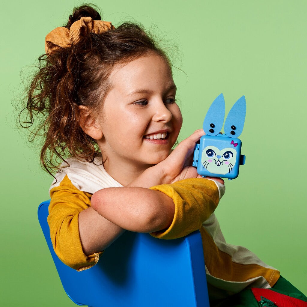 Zorg samen met Andrea in de tuin voor haar konijn. Geef het melk uit de fles en een wortel om op te knauwen en zet het daarna in zijn hok. Neem de compacte kubus mee als je bij iemand gaat spelen of zet hem neer in je slaapkamer. Met zijn puntoren en schattige konijnengezicht is deze konijnenkubus een echte blikvanger.