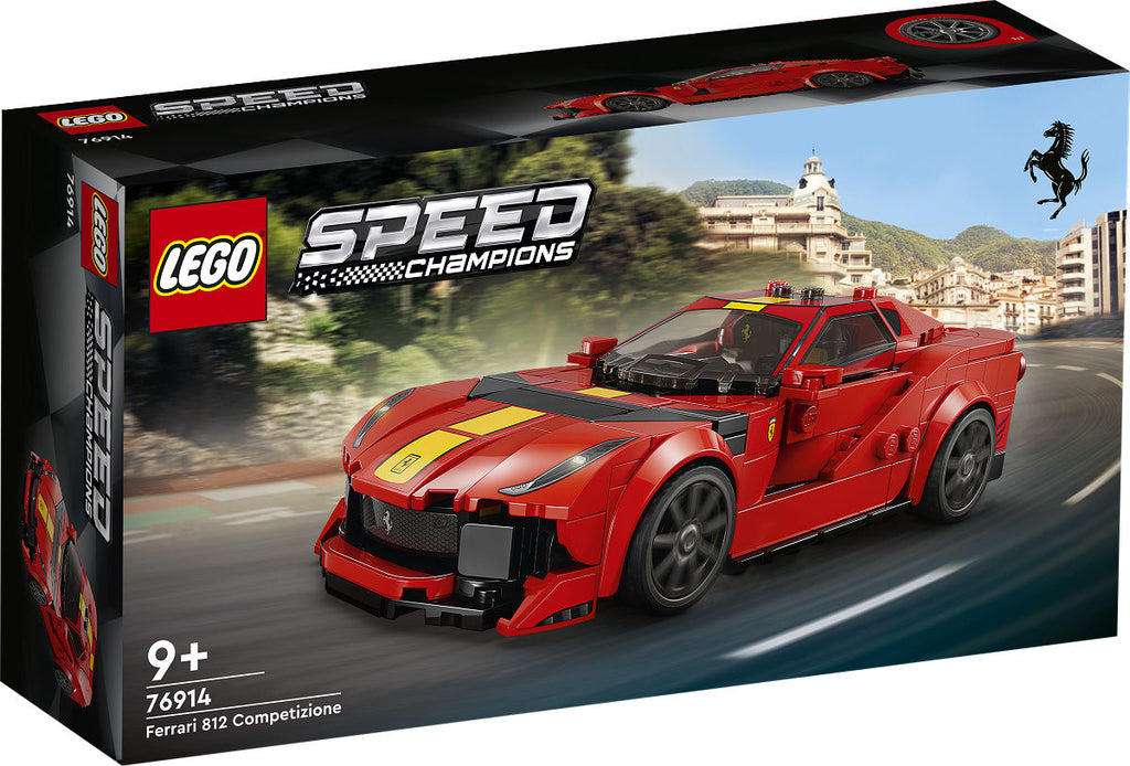 DezeLego Speed 76914 Ferrari 812 Competizione bouwset brengt het vermogen en de prestaties van de echte limited edition sportwagen tot leven. Kinderen en autofans vanaf 9 jaar kunnen ? voor de allereerste keer ? dit coole model verzamelen, bouwen en neerzetten. Deze rode Ferrari speelgoedauto bevat talrijke authentieke details: de gele streep die over de auto loopt, de zwarte band op de motorkap, de verhoogde achtervleugel, de opvallende vortexgeneratoren, de kenmerkende koplampen en achterlichten en de uitlaatpijpen. De set wordt ook geleverd met een minifiguur van een coureur om achter het stuur te plaatsen voor spannende raceactie. Laat de Builder app jou en je kind begeleiden tijdens een eenvoudig en intuïtief bouwavontuur. Zoom in en draai modellen in 3D, bewaar sets en houd je voortgang bij.