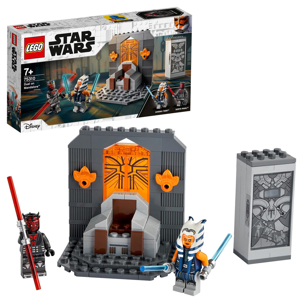 Kinderenkunnen actiescènes uit Star Wars: The Clone Wars naspelen met deze draagbare Duel op Mandalore (75310) bouw- en speelset. De set bevat een troon van LEGO® stenen met een geheime lade met een blasterpistool, plus een raam dat eruit kan ? ideaal om een LEGO minifiguur doorheen te gooien! Kinderen kunnen de Mandalorian kluis ook gebruiken om Darth Maul in op te sluiten.De set bevat 2 LEGO minifiguren: Ahsoka Tano met 2 lichtzwaarden en Darth Maul met een dubbelzijdig lichtzwaard.Inclusief stapsgewijze instructies. Geweldig bouwspeelgoed voor kinderen. 147-delig. Geschikt voor kinderen vanaf 7 jaar.