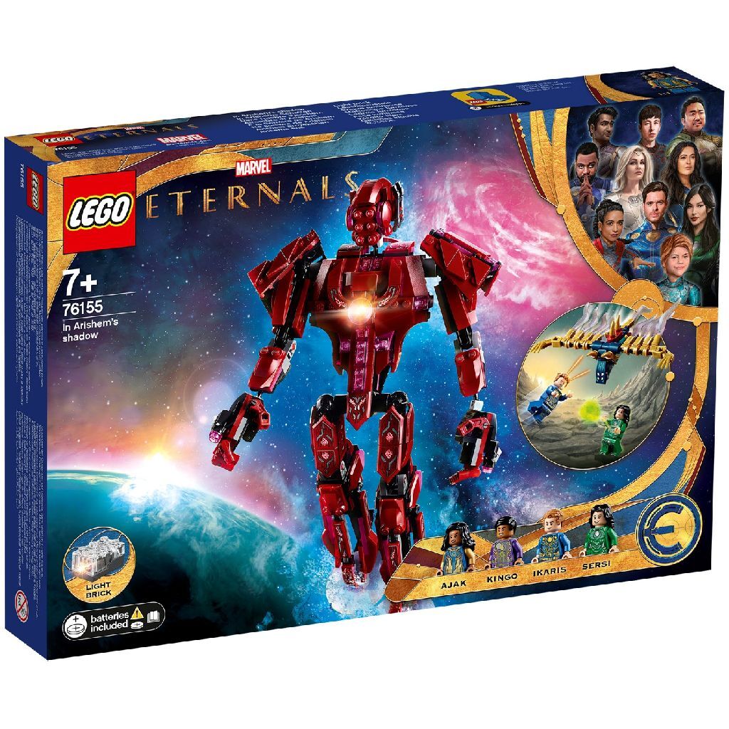 Met deze LEGO Marvel The Eternals In de schaduw van Arishem (76155) speelset beleven jonge superhelden allerlei spannende avonturen boordevol Marvel filmactie wanneer ze 4 Eternals helpen in hun strijd tegen een kwaadaardige Deviant. Inclusief 4 minifiguren van Eternals superhelden (Ikaris, Sersi en de exclusieve Ajak en Kingo), een figuur van een Deviant, een verstelbare Celestial met een oplichtende borstkas, 2 dolken, 1 zwaard, 2 minischieters en een mes. Kinderen moeten al hun superheldenvaardigheden in de strijd gooien wanneer een Deviant 4 populaire Eternals aanvalt. En met een almachtige Celestial die groot genoeg is om een Eternal in zijn hand te houden, kan er van alles gebeuren! Een cool cadeau voor een kind van 7 jaar of ouder! De figuur van de Celestial is ca. 30 cm hoog, dus met deze LEGO® Marvel The Eternals In de schaduw van Arishem speelset beleven kinderen grootse superheldenactie. De set ziet er ook fantastisch uit in een kinderslaapkamer. 493-delig.