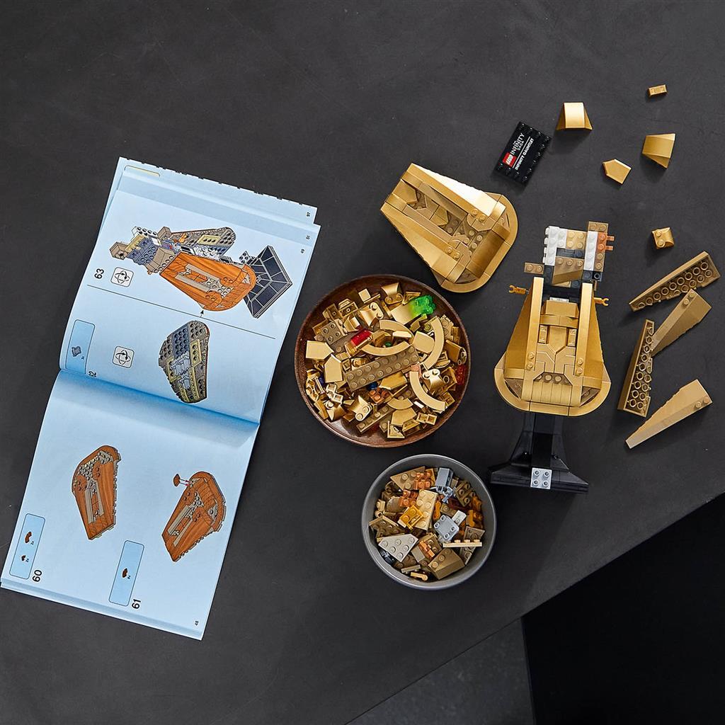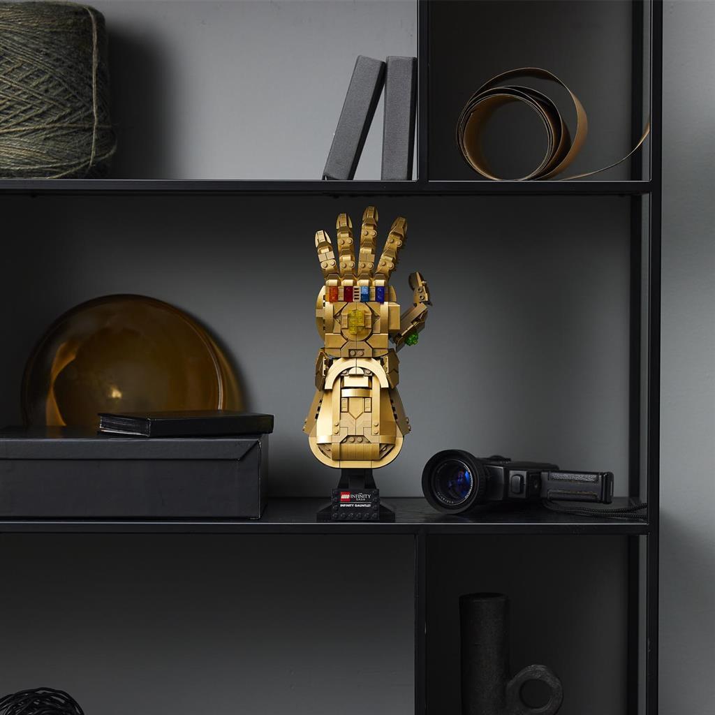 - Deze gouden replica van LEGO®-stenen vertegenwoordigt de legendarische Infinity-handschoen trouw aan het origineel. Het model met de gekleurde Infinity-stenen staat op een stevige basis met een informatiebord.