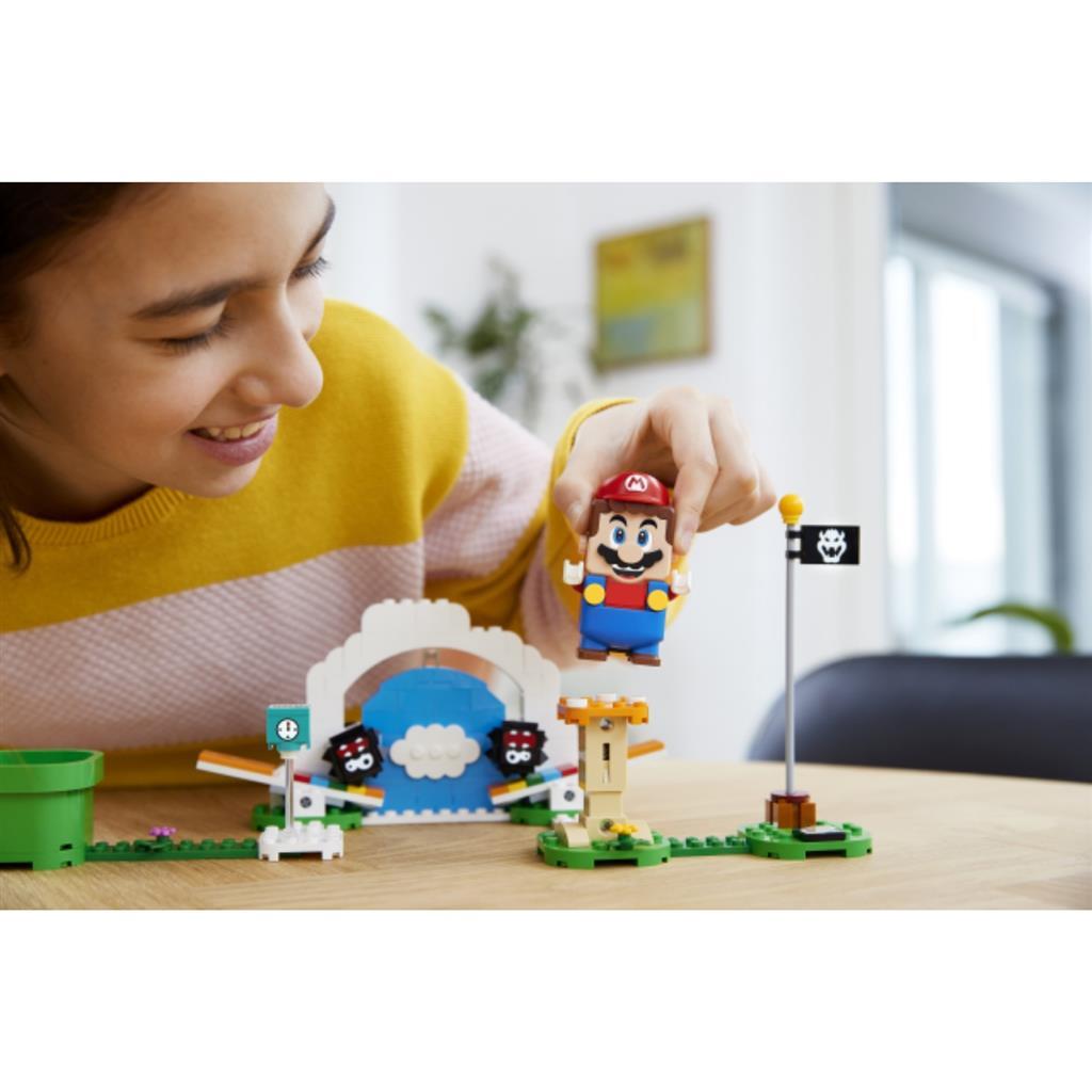 De set bevat een bouwbaar model van een bewolkte lucht met flippers voor de 2 Lego Fuzzy figuren, plus een paddenstoeltrampoline en een tijdblok. Help Mario, Luigi of Peach om op de paddenstoeltrampoline te springen, op de flippers te stampen en digitale munten te verzamelen. (Let op: je hebt de startset 71360, 71387 of 71403 nodig.) Je vindt de bouwinstructies voor deze set in de Lego Super Mario app. Daarnaast biedt de app inspiratie voor andere manieren om te bouwen en spelen, plus een veilig forum waarop kinderen hun ideeën kunnen delen. De Lego Super Mario speelgoedsets om te verzamelen zijn topcadeaus voor kleine trendsetters. Met de startsets en uitbreidingssets kunnen fans unieke levels maken, uitbreiden en ombouwen voor urenlang spelen en munten verzamelen. Geschikt voor kinderen vanaf 6 jaar.