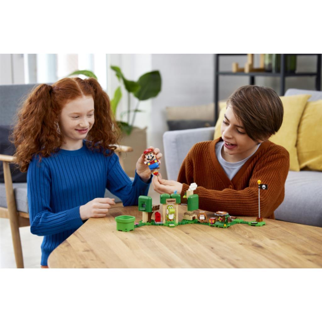 Kinderen kunnen hun LEGO Super Mario wereld uitbreiden met deze leuke uitbreidingsset met Yoshi AND apos;s cadeauhuisje en een snackmachine waarmee het fruit goud wordt.