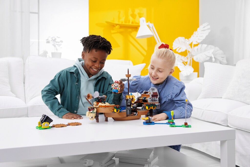 Met deze uitbreidingsset (71391) kunnen kinderen Bowsers luchtschip bouwen en hun LEGO Super Mario wereld nog leuker maken. Het schip kan worden ingesteld op de vliegmodus of uitgeklapt voor de levelmodus. Spelers kunnen allerlei uitdagingen voltooien, zoals Bowsers mechahand en een POW-blok om een Rocky Wrench uit zijn schuilplaats te lokken. (Let op: je hebt de startset 71360 of 71387 nodig.) 1152-delig. Geschikt voor kinderen vanaf 8 jaar.