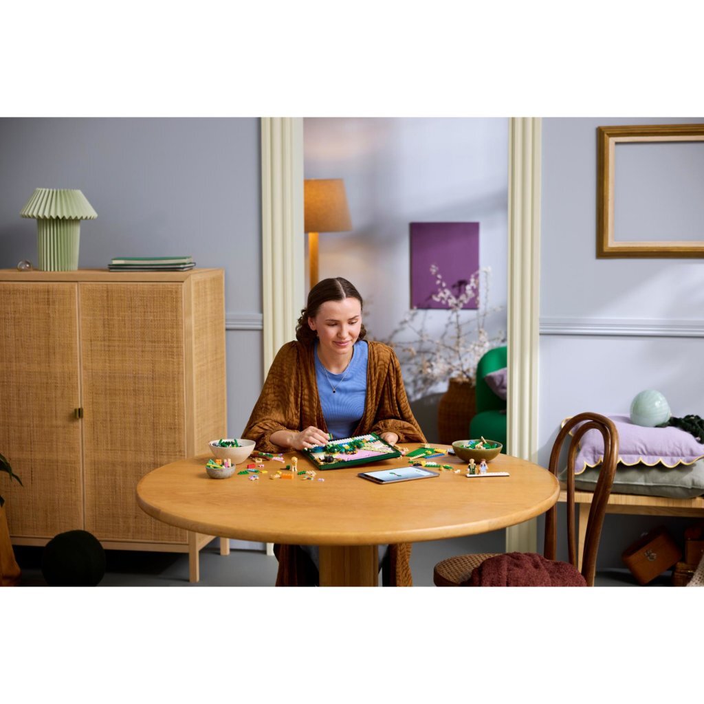 Dit fantasierijke cadeau zit boordevol kleur (roze voor Glinda, groen voor Elphaba en geel voor de Yellow Brick Road) en herinnert je aan avonturen uit de Wicked films. Dit Wicked cadeau voor vrouwen, mannen en volwassen fans brengt momenten uit de films tot leven in 3D. Deze vrolijke kamerdecoratie bevat bekende locaties, waaronder Shiz University, Munchkinland en de Emerald City. Glinda's zeepbel, het magische bos en een geheim vak met 5 personages (minifiguren van Dorothy Gale, de Laffe Leeuw, de Vogelverschrikker en de Blikken Man) en heel veel andere verwijzingen zijn in het kunstwerk verstopt. Dit Wicked cadeau zit vol kenmerken en details uit de films en laat fans genieten van een ontspannende activiteit terwijl ze scènes nabouwen met familie of vrienden. Deze bouwset voor volwassenen bevat 1518 onderdelen. Geschikt vanaf 18 jaar.
