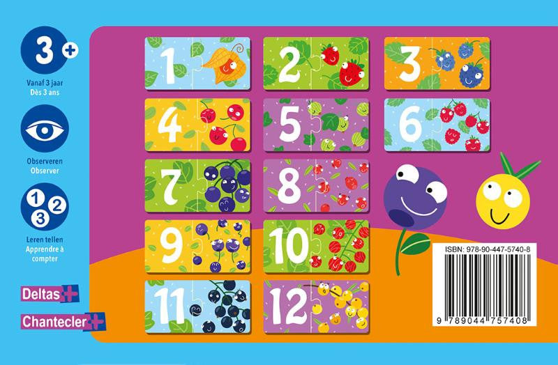 Leer tellen met deze vrolijke puzzel van Deltas. Er kunnen twaalf kleine puzzels gemaakt worden met deze legpuzzel. Er staan cijfertjes op waardoor je automatisch leert tellen. Heel leuk om samen met je kindje te leggen.