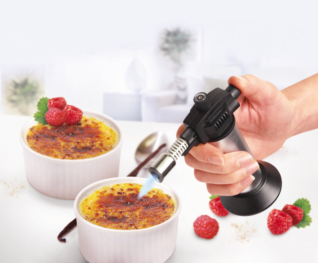 Altijd snel bij de hand om iets lekkers en bijzonders te maken: deze mooie Leifheit crème brûlée-cadeauset heeft alles, om desserts, ovenschotels en drankjes te flamberen, karamelliseren of van een heerlijk krokant korstje te voorzien. De hoogwaardige en elegante koksbrander ligt goed in de hand en is gemakkelijk te bedienen. Met de instelbare vlam maak je op professionele wijze een traditionele Franse crème brûlée met een krokant, stevig laagje karamel. Voor een succesvol dessert heb je natuurlijk de juiste vormpjes nodig. Onderdeel van deze set zijn vier hittebestendige schaaltjes van keramiek. De hoogte en doorsnee zijn perfect op elkaar afgestemd, zodat de crème gelijkmatig kan stollen. De brander is met 15ml gas gevuld. Je kunt hem met gewoon butaangas navullen. De keramieken schaaltjes zijn vaatwasserbestendig. In mooie cadeauverpakking.