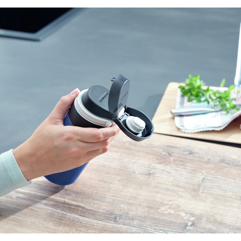 Als je op zoek bent naar een lekvrije thermobeker die je veilig in je zak kunt meenemen, dan is de Flip isoleerbeker van Leifheit de juiste keuze.Omdat deze verschillende veiligheidsfuncties heeft die voorkomen dat de inhoud lekt: het deksel is voorzien van een sluiting die 100% lekvrij is.Het slot voorkomt dat het deksel van de isolerende beker vanzelf opengaat.Hij kan dus gemakkelijk overal mee naartoe worden genomen.De drukknop is ook bijzonder praktisch voor onderweg.Hierdoor is het mogelijk om de beker met één hand te openen - en zonder hem neer te hoeven leggen.Het filterelement in het deksel voorkomt dat kruiden, fruit en dergelijke het drinken verstoren.Het filter kan van het deksel worden losgeschroefd en gemakkelijk grondig worden gereinigd.Uiteraard is de beker niet alleen geschikt voor koffie-to-go en andere warme dranken, maar ook voor coole dingen.Dankzij de dubbelwandige isolatie van roestvrij staal houdt het koude dranken tot 18 uur aangenaam koel en warme dranken tot6 uur warm.