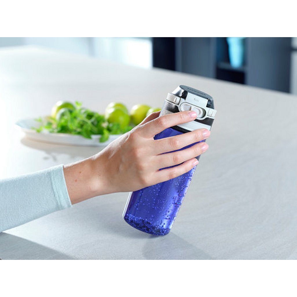 Op weg naar universiteit, school of sport en met maar één hand kunnen drinken? Dat is geen probleem met deFlip tritan drinkfles die met slechts één hand te bedienen is.Omdat hij is voorzien van een praktische drukknop die met de wijsvinger te bedienen is.Er zit ook een slot op het deksel zodat de fles in de tas niet per ongeluk open gaat.Verder zorgt de schroefdop ervoor dat deze 100% lekvrij is.Met behulp van de draagbeugel kan de drinkfles eenvoudig aan een rugzak of tas worden bevestigd.Er zit een softgrip oppervlak op het deksel zodat deze comfortabel in de hand ligt en makkelijk te openen is. Hoogwaardige tritan plastic, dan weet je zeker dat hij helemaal vrij is van vervuilende stoffen.Daarom is de drinkfles ideaal voor kinderen of voor sport.Het is natuurlijk hittebestendig.Daarom kunnen koude en warme dranken in de fles worden gevuld tot een temperatuur van 80 °C.Dankzij het schroefbare filter in het deksel van de drinkfles kunnen kruiden of fruit de inhoud verfijnen zonder het drinken te beïnvloeden.
