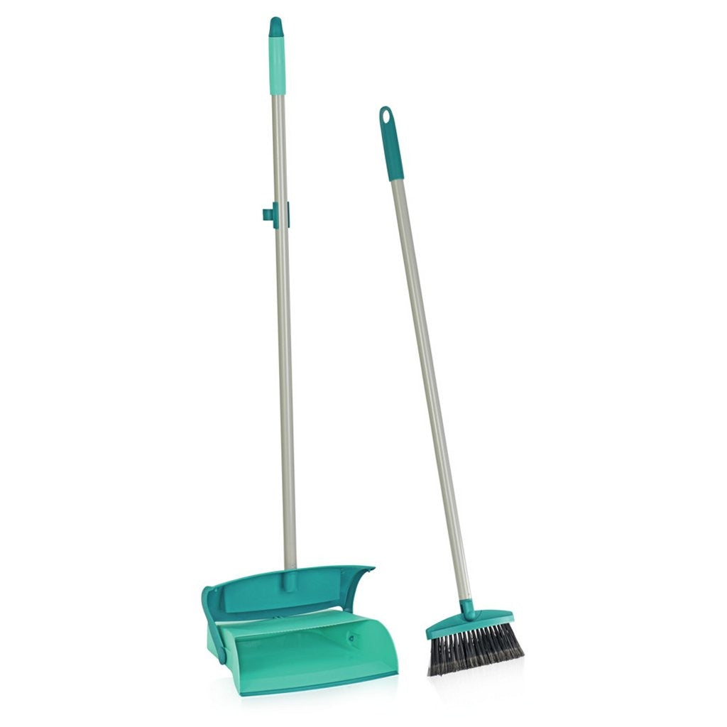 De lange steel van de bezem heeft een traploos verstelbar scharneer waardoor de bezem niet gekiept hoeft te worden en zodat alle borstels altijd vlak liggen en meedraaien. De fijne borstelharen nemen ook het fijnste stof, vuil en haren mee. Om ervoor te zorgen dat alles perfect schoon blijft bij de verplaatsing, sluit de vuilcontainer van het blik automatisch, wanneer deze van de grond wordt opgetild. Voor het comfortabel werken zijn de bezem en het blik uitgerust met een lange steel. Zo kan al het vegen staand gebeuren - geheel zonder te bukken. Voor het ruimtebesparend opbergen beschikt de bliksteel over een geïntegreerde bezemhouder en een oog voor het ophangen.