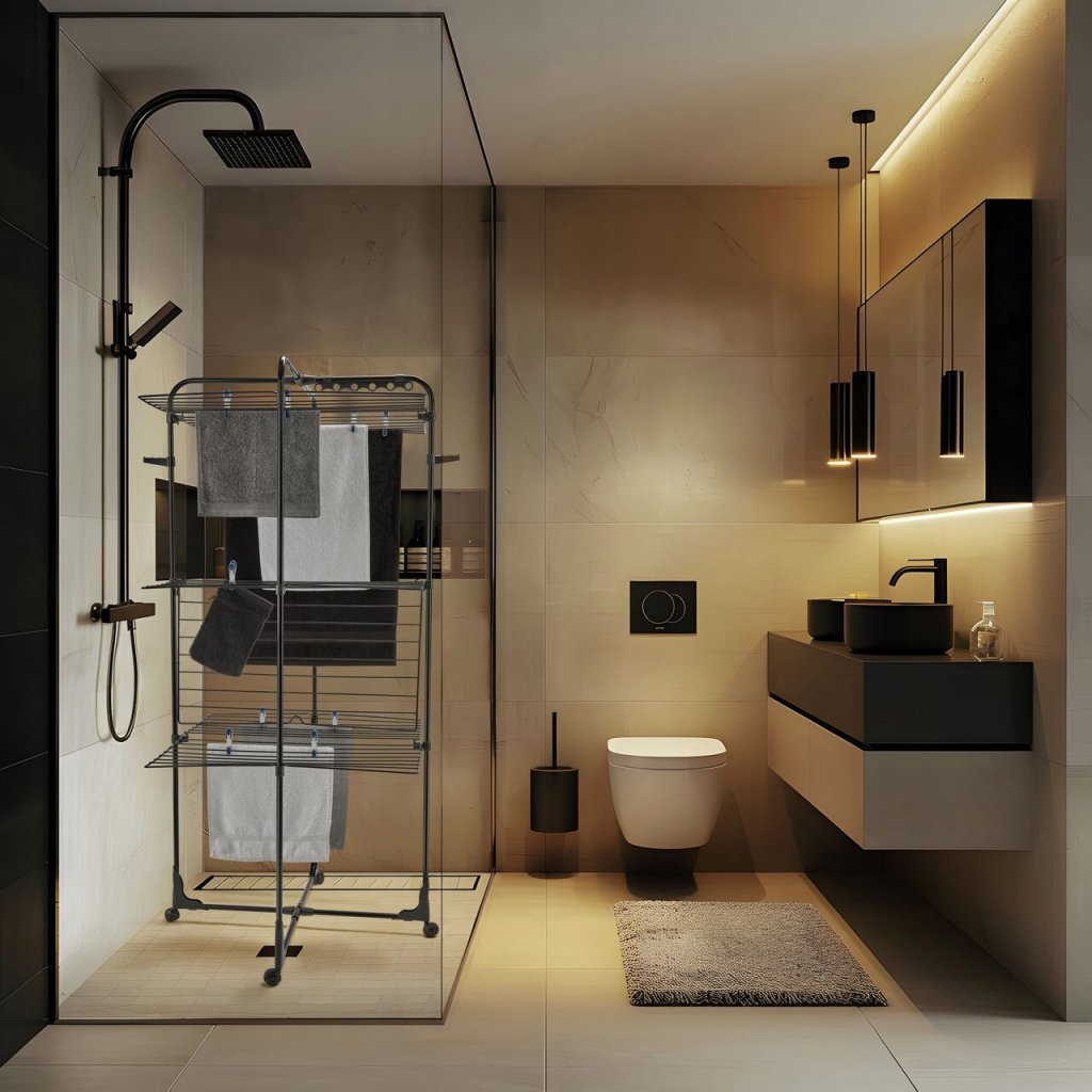 De Classic Tower 340 Black is een waar ruimtewonder in aantrekkelijk en modern zwart. Deze droogtoren heeft een standvlak van slechts 69 x 73 cm. Dat past overal: in de douchecabine, in een smalle badkamer, op een klein balkonnetje of in een krappe gang. De drie droogniveaus bieden 34 meter drooglengte waaraan je drie tot vier wasmachineladingen aan wasgoed kunt ophangen. Het frame kan ingeklapt worden, waardoor de droogtoren ook alleen voor de helft gebruikt kan worden. Ook de droogniveaus kunnen afzonderlijk worden ingeklapt. Daardoor is de Classic Tower 340 Black ook voor erg lange stukken wasgoed geschikt. Dankzij de vier geïntegreerde, soepel lopende wieltjes kan het droogrek moeiteloos verplaatst worden, ook als het vol was hangt. De wieltjes zijn 360° draaibaar. Droogtoren Classic Tower 340 Black is ideaal voor gezinnen met kinderen en weinig plaats voor het drogen van de was. Na gebruik kan de Classic Tower 340 Black compact ingeklapt en plaatsbesparend opgeborgen worden. Dankzij de 2 houders voor kledinghangers aan de zijkanten en de 6 extra openingen bovenop waar je kleerhangers in kunt haken, biedt de droogtoren nog meer ruimte voor je wasgoed. De hoogte is 1,46 meter.