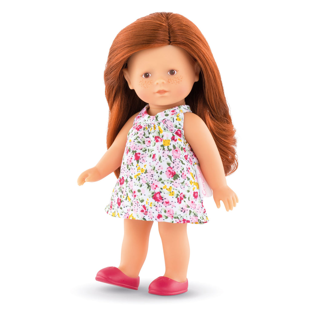 Dit kleine popje heet Ruby en is 20 centimeter. Ze heeft bruine ogen, sproetjes en lange rode haren. Ruby heeft een jurkje met verschillende kleuren bloemetjes aan en ze draagt roze schoentjes. De pop is gemaakt van buigzaam vinyl en heeft een subtiele vanillegeur.