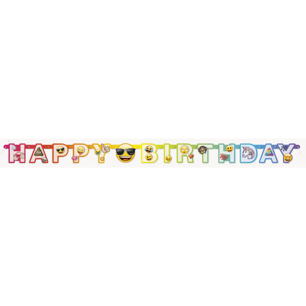 Deze kartonnen Emoji slinger is bedrukt met emoticons in regenboogkleuren en bevat de tekst "Happy Birthday". Deze slinger kan niet ontbreken op een Emoji themafeest en past super goed bij o.a. de Emoji uitnodigingen en de kartonnen borden en bekers. De slinger is ongeveer 1,8 meter lang.