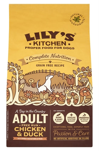 Graanvrije, volledige diervoeding (droogvoer) voor de hond. Dit smakelijke voer bevat verse kip en eend, aangevuld met kippenlever en zoete aardappel, glucosamine en prebiotica. Met groente, fruit en kruiden, een volledig en zeer smakelijk voer voor jouw hond dus!