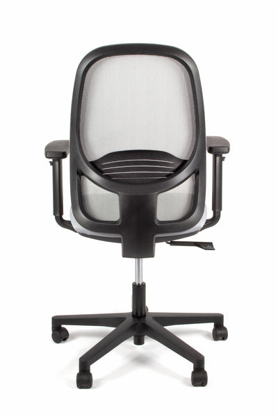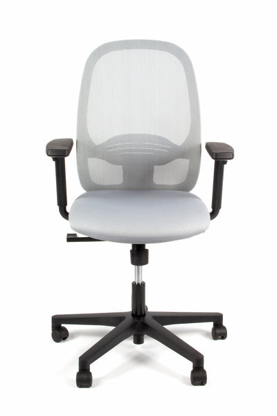 Bureaustoel Grace 01 zorgt voor een comfortabele zithouding door de brede rugleuning met verstelbare lendesteun. De armleuningen zijn 1D verstelbaar (hoog/laag) en door het synchroon mechanisme is de stoel kantelbaar en met een draaiknop is de weerstand te regelen. Ook de rugleuning is verstelbaar waardoor deze bureaustoel geschikt is voor maximaal 8 uur zitcomfort. De stoel is vervaardigd van metaal en heeft een kunststof afwerking. Het onderstel is gemaakt van kunststof en voorzien van 5 wielen die geschikt zijn voor zachte vloeren. Het polyester zitvlak (48 x 41 cm) is een synthetische vezel die licht, duurzaam, vormvast, kreukvrij en isolerend is en heeft een slijtvastheid van 85.000 zitcycli. De rugleuning is voorzien van netbespanning. Door de hendel onder de zitting is de luchtveer in hoogte individueel in te stellen van 43 tot 56 centimeter. De bureaustoel heeft een maximaal draagvermogen van 110 kg en weegt 12,5 kg. Kleur stof grijs/grijs. De bureaustoel is voorzien van Arbo norm EN1335. Made in Italy.