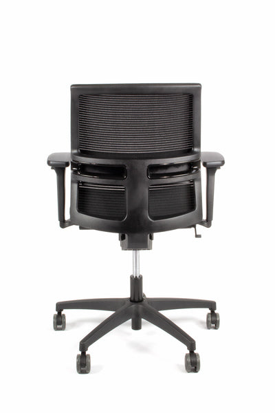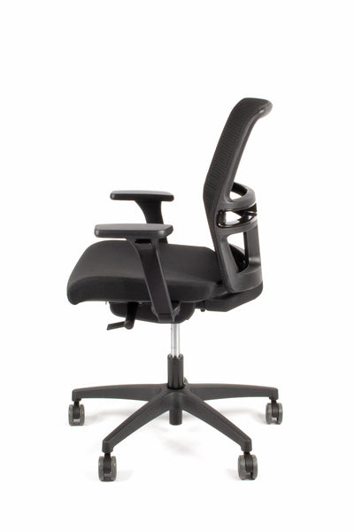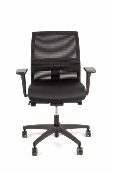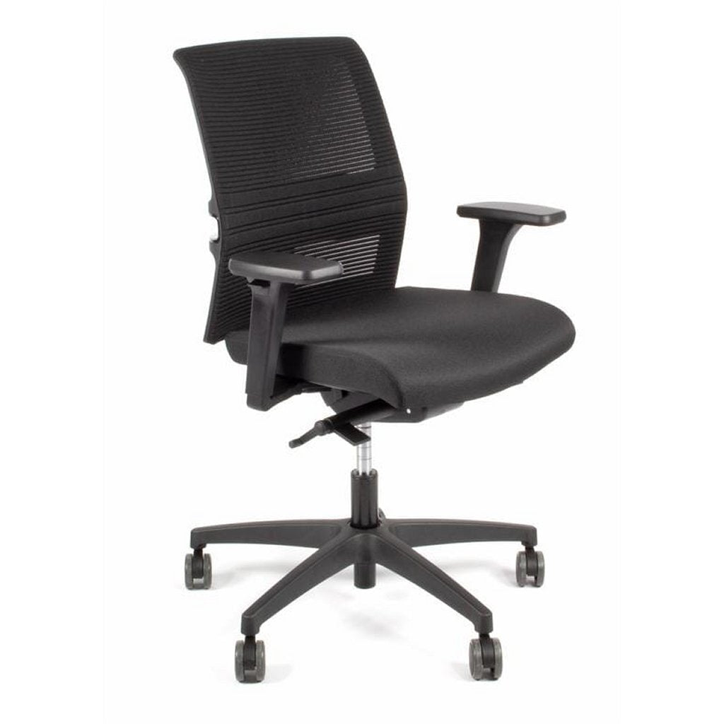 De ergonomische bureaustoel Omnia 02 zorgt voor een comfortabele zithouding door de brede rugleuning met verstelbare lendesteun. De armleuningen zijn 3D verstelbaar (hoog/laag/voor/achter) en door het synchroon mechanisme is de stoel kantelbaar en met een draaihendel is de weerstand te regelen. Ook de rugleuning is verstelbaar waardoor deze bureaustoel geschikt is voor maximaal 8 uur zitcomfort. De stoel is vervaardigd van metaal en heeft een kunststof afwerking. Het onderstel is gemaakt van kunststof en voorzien van 5 wielen die geschikt zijn voor zachte vloeren. Het polyester zitvlak (49 x 44 cm) is een synthetische vezel die licht, duurzaam, vormvast, kreukvrij en isolerend is en heeft een slijtvastheid van 85.000 zitcycli. De rugleuning is voorzien van netbespanning. Door de hendel onder de zitting is de luchtveer in hoogte individueel in te stellen van 44 tot 56 centimeter. De bureaustoel heeft een maximaal draagvermogen van 110 kg en weegt 16,4 kg. Kleur stof zwart/zwart. De bureaustoel wordt geleverd met 5 jaar garantie en is voorzien van Arbo norm EN1335. Made in Italy.