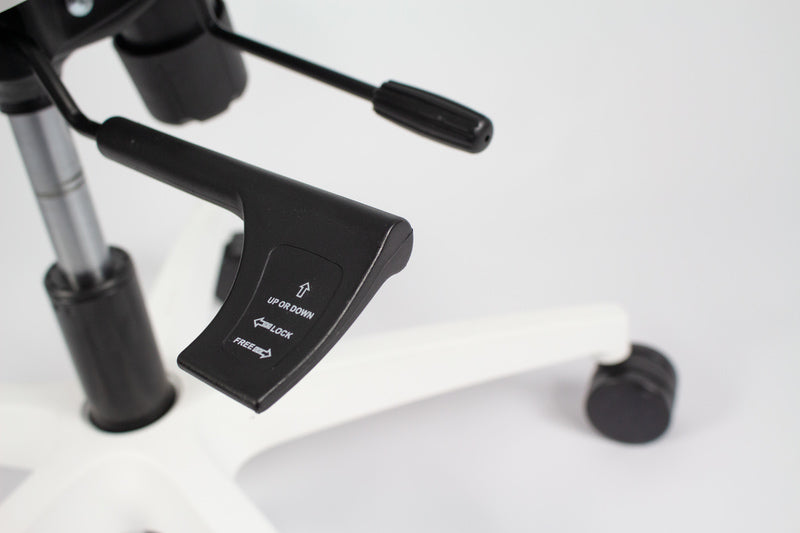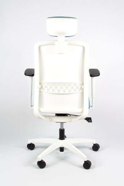Bureaustoel Tekna 01/PT zorgt voor een comfortabele zithouding door de verstelbare lendesteun en verstelbare hoofdsteun. De armleuningen zijn 3D verstelbaar (hoog/laag/voor/achter/links/rechts) en door het synchroon mechanisme is de stoel kantelbaar en met een draaiknop is de weerstand te regelen. Ook de rugleuning en de zitting zijn verstelbaar waardoor deze bureaustoel geschikt is voor maximaal 8 uur zitcomfort. De stoel is vervaardigd van wit metaal en heeft een witte kunststof afwerking. Het onderstel is gemaakt van wit kunststof en voorzien van 5 wielen die geschikt is voor zachte vloeren. Het wollen zitvlak (49 x 44 cm) is een vlamvertragende polyester die zacht en warm is een slijtvastheidheeft van 60.000 zitcycli. De rugleuning is voorzien van netbespanning. Door de hendel onder de zitting is de luchtveer in hoogte individueel in te stellen van 43 tot 56 centimeter. De bureaustoel heeft een maximaal draagvermogen van 110 kg en weegt 11,4 kg. Kleur stof blauw/wit. De bureaustoel wordt geleverd met 5 jaar garantie en is voorzien van Arbo norm EN1335. Made in Italy.