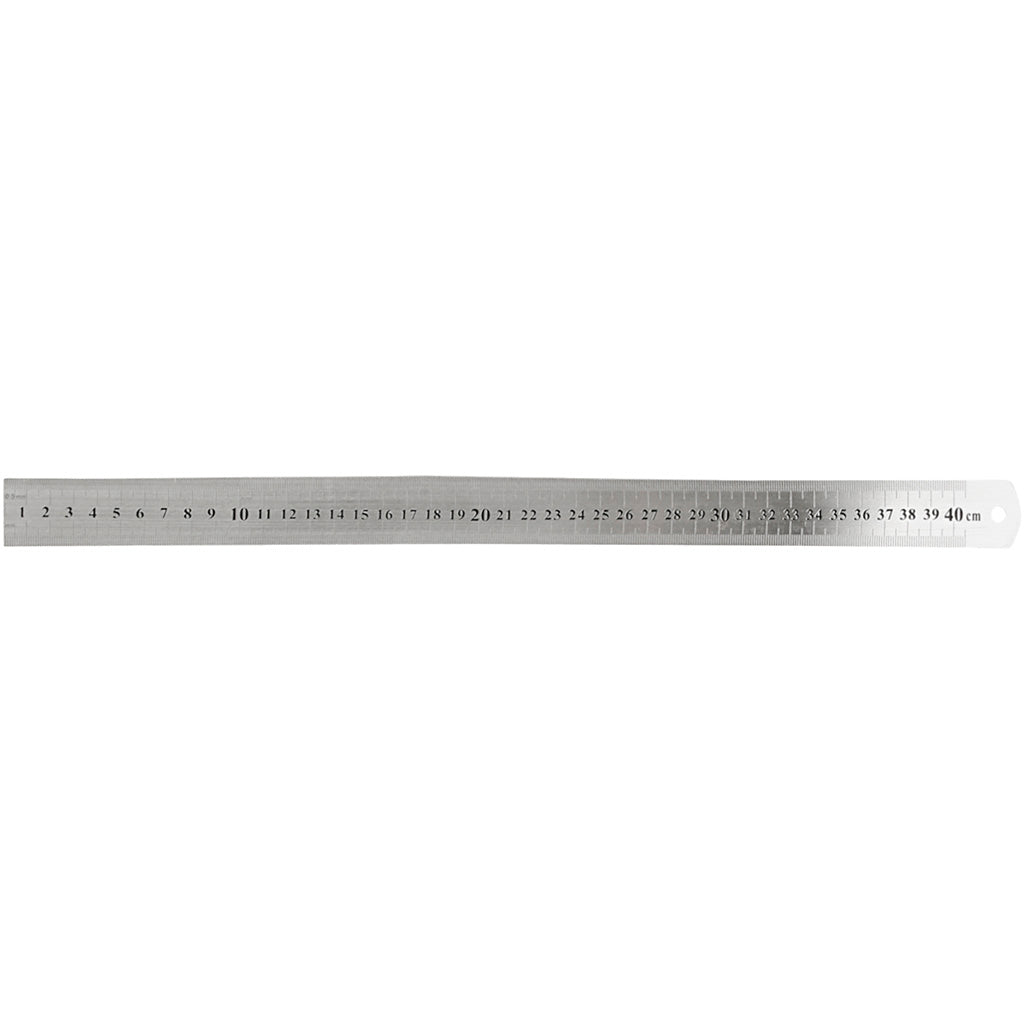 Metalen liniaal met centimeter verdeling aan beide kanten. Afmeting: 40 centimeter.
