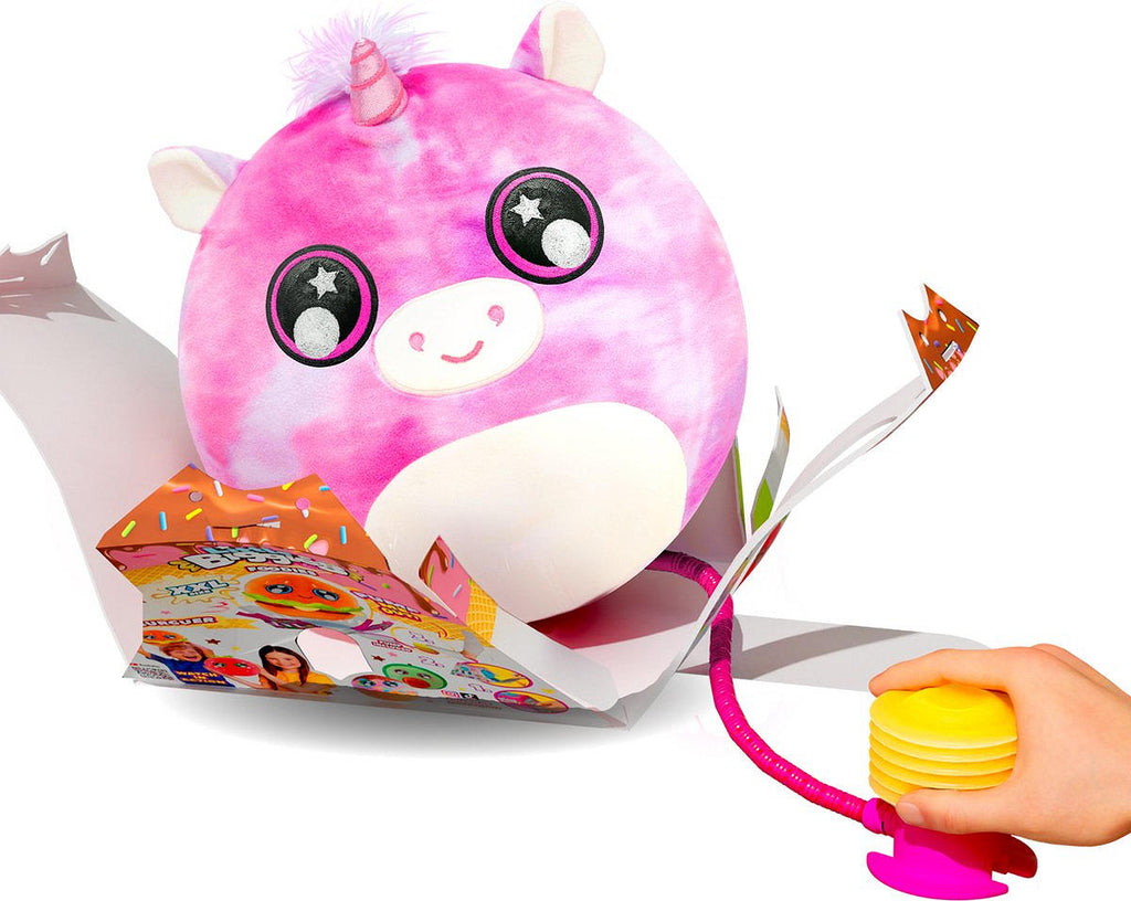 Little Biggies zijn ronde, zachte knuffels, met een unieke unboxing-ervaring! Elke knuffel zit in een driehoekige mysterie verpakking en wordt geleverd met een handpomp die wordt gebruikt om je Biggies personage te onthullen met een 'PoP'-effect.Pomp met de handpomp en je Little Biggie zal uit zijn verpakking ploppen! Ze hebben de afmeting van een voetbal, ze zijn zacht en gedetailleerd gedecoreerd met glimmende details. In deze verpakking vind je de Little Biggie Fantasy Unicorn.Deze Biggie Unicorn heeft het uiterlijk van een Unicorn met allerlei leuke details en een eenhoorn. Je kunt je Litlle Biggie leeg laten lopen en weer oppompen wanneer jij dat wilt! Spelen met je Biggie is ook nog eens superleuk! Er zijn 4 verschillende Little Biggies te verzamelen. Leeftijdsindicatie: 3 jaar+.