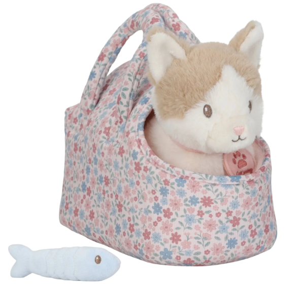 Voor de kleine kattenfans is er deze knuffelige poes Marley in een prachtige bloemenprint tas. Met haar zachte vachtje en schattige halsbandje wordt ze gegarandeerd een geliefd vriendje. De tas heeft een opening aan de voorkant, zodat het kattenkopje gezellig naar buiten kan gluren. En natuurlijk hoort er ook een speelgoedvisje bij – want spelen en knuffelen, daar houdt deze kat het allermeest van!