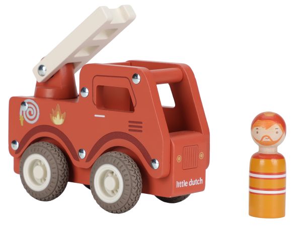 Brandweer paraat! Blus de brand en red de dag met deze stoere houten brandweerauto. De beweegbare ladder helpt bij elke reddingsactie, terwijl de rubberen wielen zorgen voor een soepele rit. Help dieren uit hoge bomen en zorg ervoor dat iedereen veilig is. De set bevat een dappere brandweerman die altijd klaarstaat om te helpen. Perfect om te combineren met de brandweerkazerne voor nog meer actie!