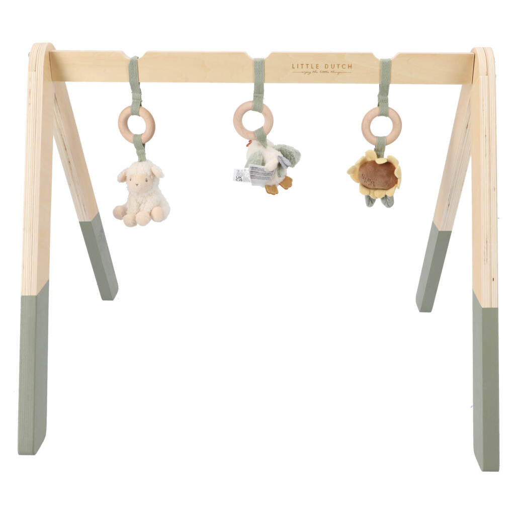 Omhoog met die kleine armpjes! Nieuwsgierige baby's vermaken zich kostelijk met deze houten babygym. Er zijn drie verschillende activiteitenspeeltjes die voor het vermaak zorgen, waaronder een vrolijk schaapje, een lief kipje en een kleurrijke bloem. De babygym ontwikkelt de hand-oogcoördinatie, verbetert de motoriek en stimuleert de zintuigen elke keer dat je kleintje naar een van de speeltjes grijpt. WAARSCHUWING: Om te voorkomen dat het kind verstrikt raakt, en zich bezeert, verwijder dit speelgoed wanneer het kind op handen en voeten begint te kruipen. Te monteren door een volwassene. Geschikt voor kinderen tussen de 0 en 6 maanden.