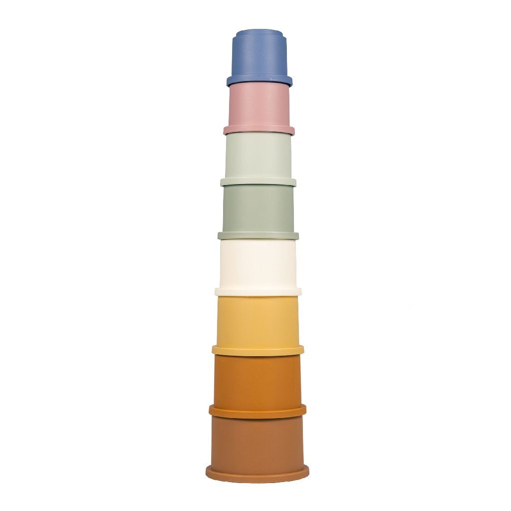1,2,3 hoe hoog wordt de toren?! Deze set met bekers daagt je peuter uit om ze één voor één op elkaar te stapelen. Hoe groot zal de vreugde zijn als de toren helemaal staat! En hoe leuk is het om de toren weer om te gooien! Uren speelplezier gegarandeerd. Uitgevoerd in super trendy retro kleuren. Deze bekers zullen je kleintje zeker vermaken. De 8 stapelbekers hebben een nummer aan de bovenkant en passen gemakkelijk in elkaar om te voorkomen dat de toren te snel valt. Je kleintje leert over cijfers en ontwikkelt fijne motoriek. Stapel en maak de toren in de box, op de vloer of in de badkuip of zandbak. Dankzij het veelzijdige materiaal kan het overal worden gebruikt. Plaats de kleine bekers in elkaar om ze eenvoudig op te bergen. De toren bestaat uit 8 stapelbekers, variërend in diameter tussen 6 en 9,5 cm en de toren is in totaal 43 cm hoog als je alle bekers op elkaar zet. Geschikt voor kinderen vanaf 6 maanden.