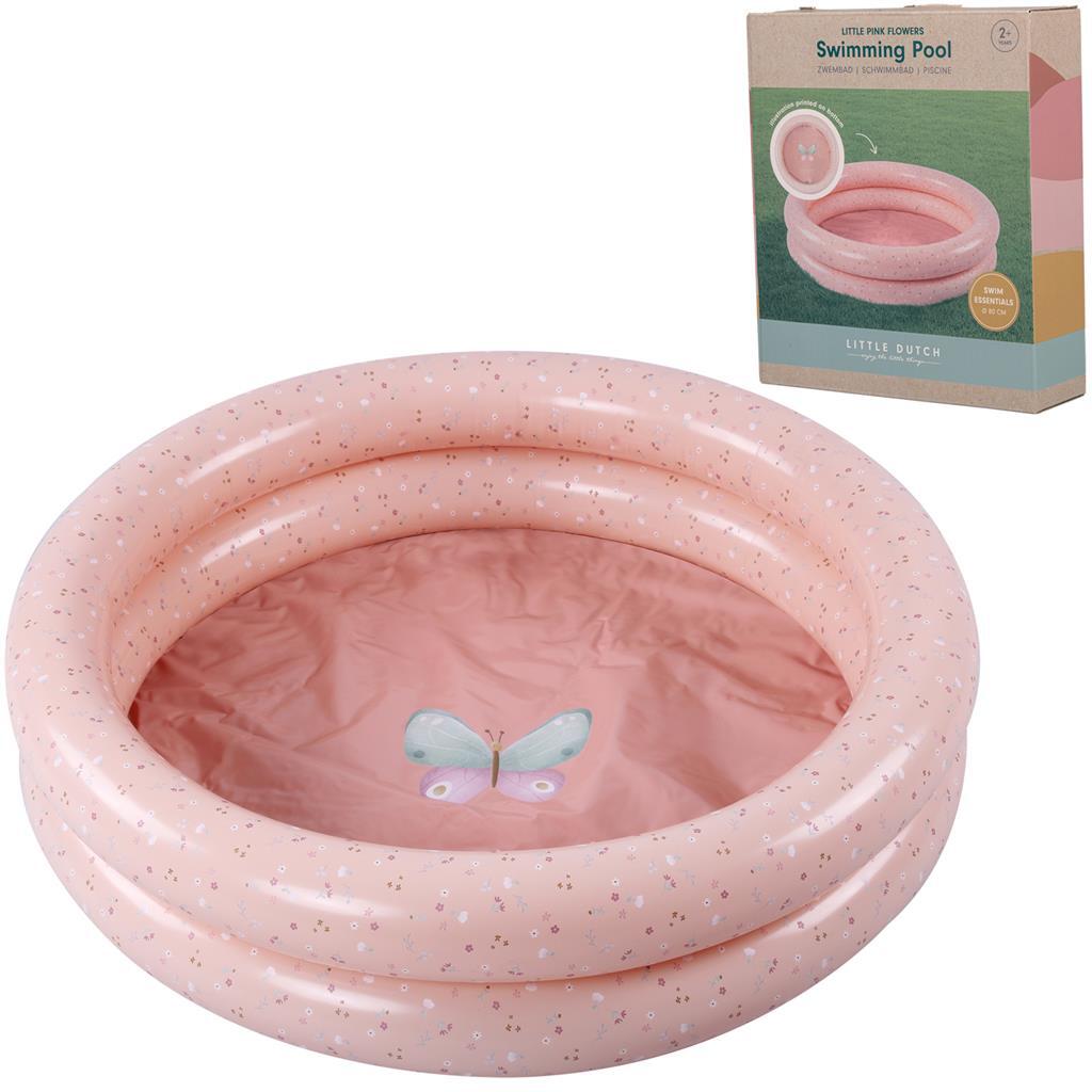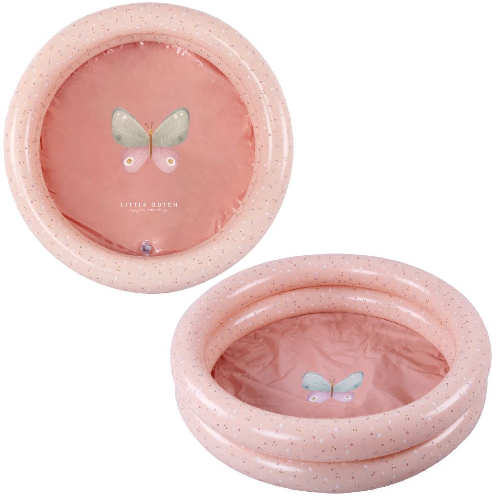 Little Dutch twee-rings opblaas zwembadje met een diameter van 80 cm. Uitgevoerd in de roze kleurstelling van het Flowers and Butterflies thema. Geschikt voor kinderen vanaf 24 maanden.