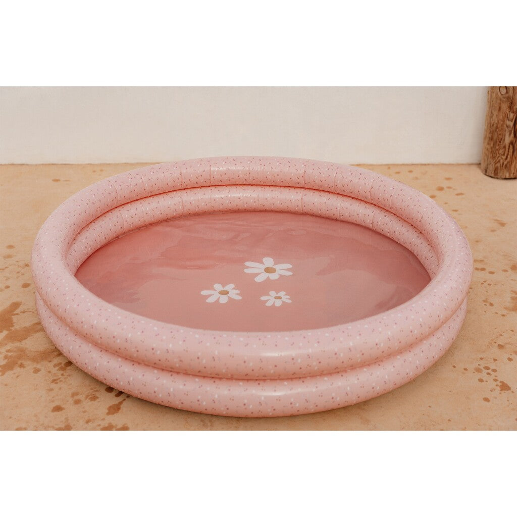 Little Dutch twee-rings opblaas zwembadje met een diameter van 150 cm. Uitgevoerd in de roze kleurstelling van het Flowers and Butterflies thema. Verpakt in een full-colour doos. Geschikt voor kinderen vanaf 24 maanden.