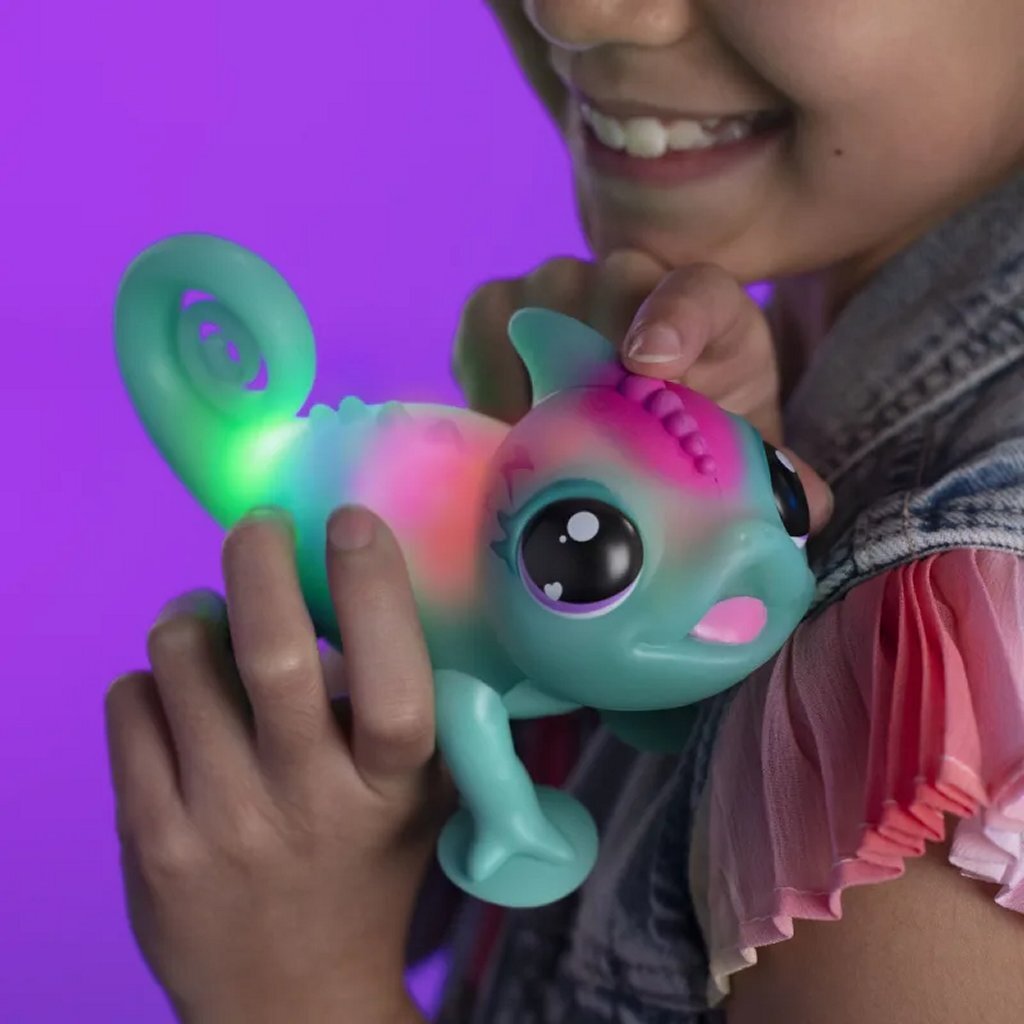 Speelse blauwe kameleon die van kleur kan veranderen om zijn stemming aan te geven, en bovendien meer dan 30 geluiden en emoties heeft. Hij licht op door muziek. Geschikt voor kinderen vanaf 5 jaar.