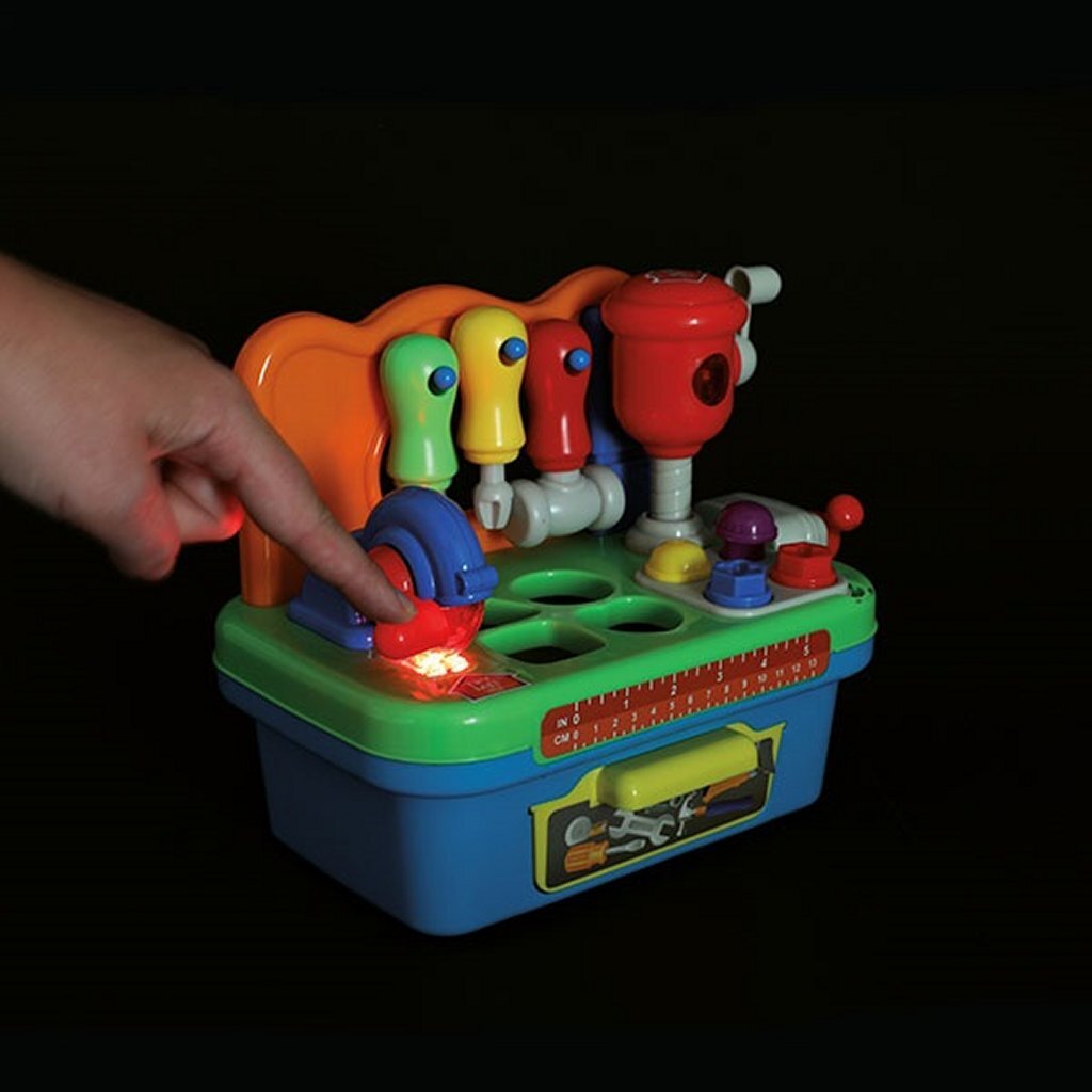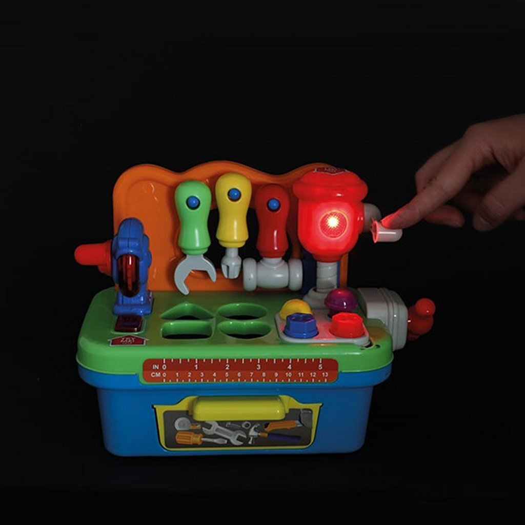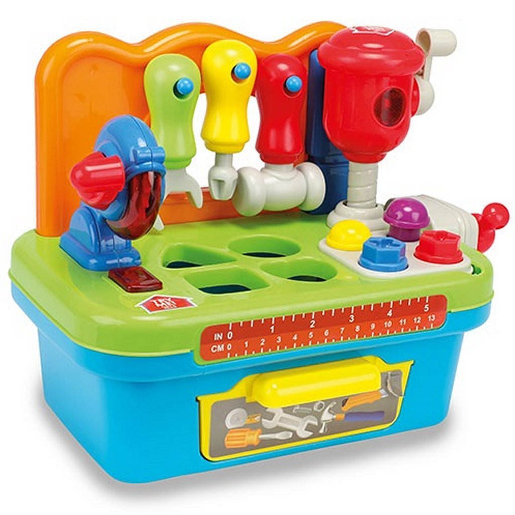 Little Stars vormenstoof werkbank met lichteffecten, geluidseffecten en gereedschap. Stimuleert de creativiteit en de motoriek. Afmeting LxH ca. 20 x 25 cm. Inclusief 3x CR1625 batterijen. Geschikt voor kinderen vanaf 2 jaar.