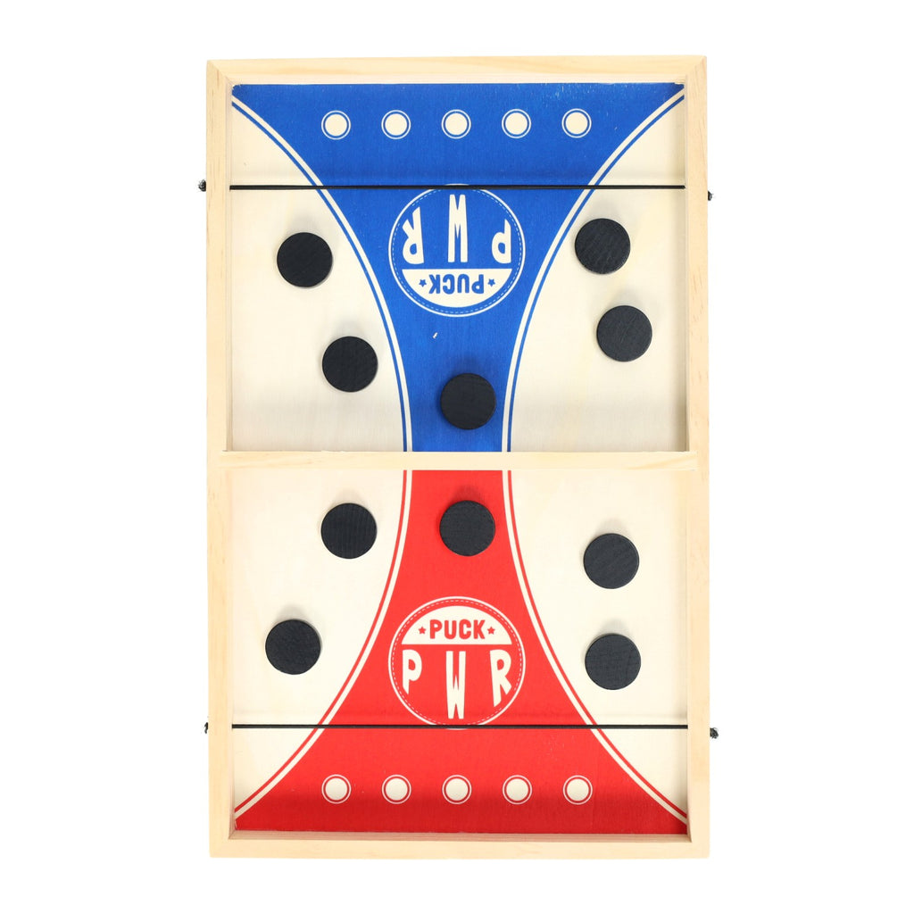 Het Lobbes Houten Puckschietspel is een snel en actief spel waarbij spelers pucks naar elkaars speelhelft schieten. Het spel is gemaakt van hout, wordt geleverd met 10 pucks en heeft een compact formaat van ca. 35 x 22 cm. Geschikt voor kinderen vanaf 3 jaar.