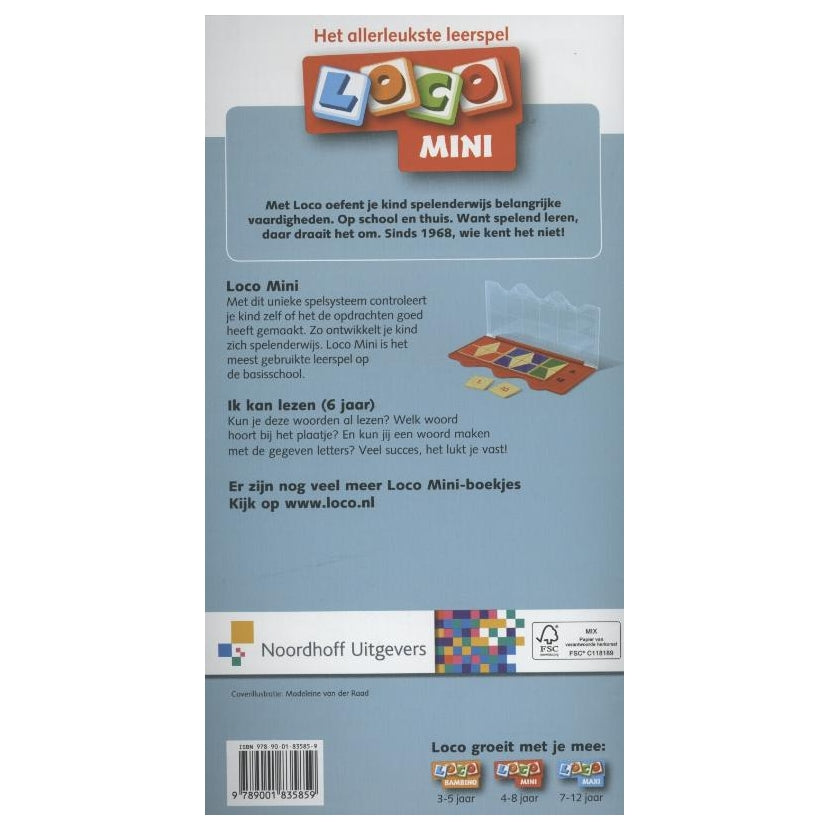 Kun je deze woorden al lezen? Welk woord hoort bij het plaatje? En kun jij een woord maken met de gegeven letters? Veel succes, het lukt je vast! Het Mini Loco boekje kan alleen gespeeld worden met de Mini Loco basisdoos. De basisdoos is niet inbegrepen.