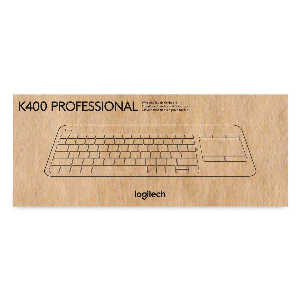 Be productive anywhere you choose to work with the Logitech K400 Professional Wireless Touch Keyboard, a professional-grade all-in-one keyboard/touchpad combo. Wireless connectivity eliminates mobility-limiting cords while the lightweight, compact design reduces clutter and frees valuable work space. The K400 Professional delivers convenience and versatility on a desktop and beyond, including conference rooms, classrooms, reception areas, kiosks and other diverse work settings.