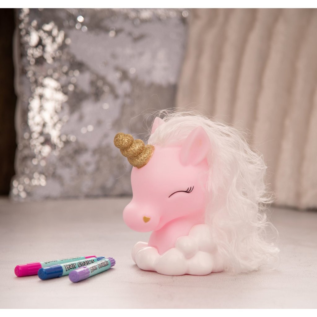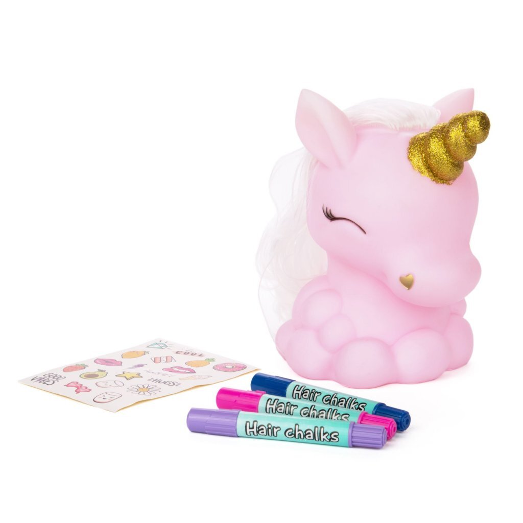 Deze schattige eenhoorn is niet alleen een knuffelvriendje, maar ook een bron van eindeloos plezier en creativiteit. Wat deze eenhoorn zo bijzonder maakt, zijn de drie verschillende kleuren licht die zorgen voor een betoverende sfeer. Laat je kind wegdromen in de warme gloed van de lichtshow en genieten van de gezelligheid die deze eenhoorn brengt. Maar dat is nog niet alles! Deze set wordt geleverd met 5 krijtjes en verschillende stickers, waarmee je kind de eenhoorn kan versieren en personaliseren. Laat hun verbeelding de vrije loop en creëer een unieke eenhoorn met behulp van de kleurrijke krijtjes en stickers. De krijtjes kunnen zelfs als haarkrijt worden gebruikt, zodat je kind zijn of haar eigen stijl kan creëren, zowel op de eenhoorn als op zichzelf. Dit zorgt voor een unieke, kleurrijke en speelse ervaring.