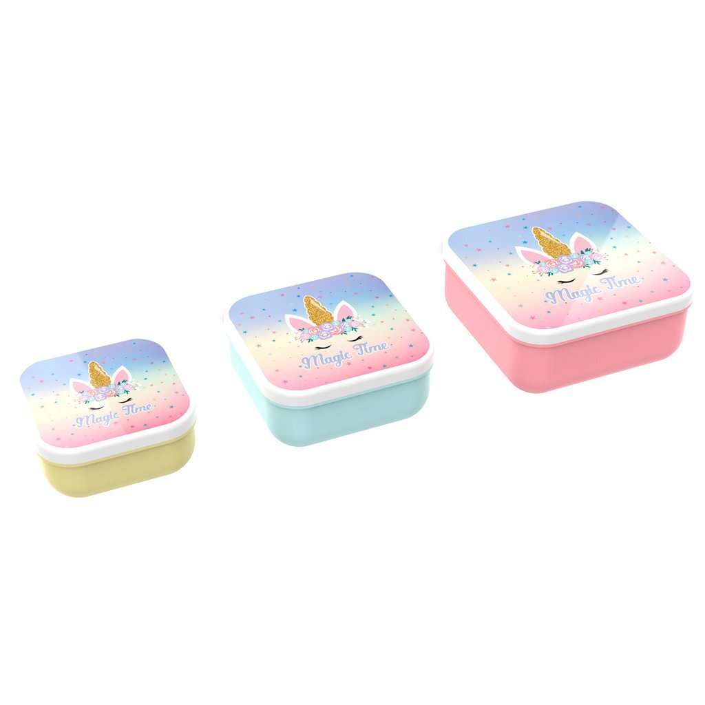 Ben jij ook zo?n fan van eenhoorns? Met deze 3in1 set kan jij jouw boterhammen en fruit overal mee naartoe nemen! De boxen zien er prachtig uit met een mooie afbeelding van een eenhoorn. Geschikt voor kinderen vanaf 3 jaar.