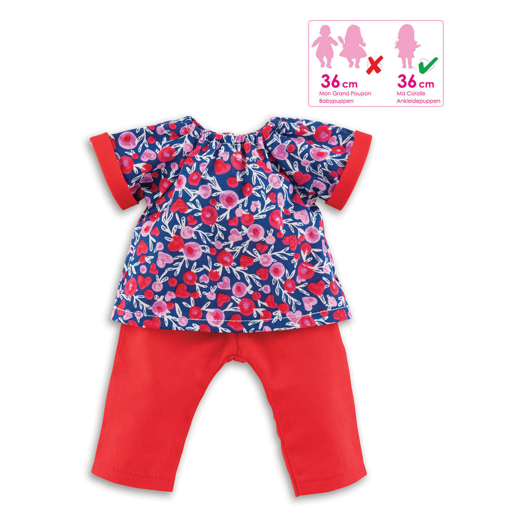 Set poppenkleding met T-shirt en rode broek, geschikt voor de Ma Corolle pop of voor popjes van 36 cm.