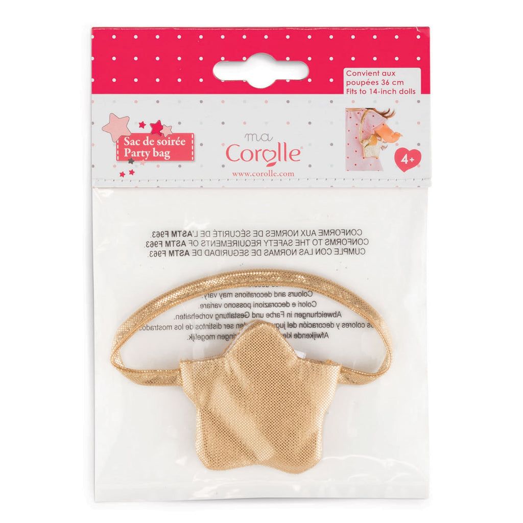 Toffe Ma Corolle Poppen Party Bag in de vorm van een ster. De party bag heeft een mooie glanzende gouden kleur en zal het goed doen op feestjes! Geschikt voor Corolle poppen van 36 centimeter.