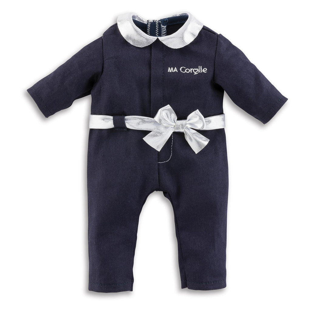 Nachtblauwe poppenjumpsuit van Ma Corolle met kraagje en strik. Dankzij de klittenbandsluiting en het soepele materiaal is het poppenjurkje makkelijk aan- en uit te trekken. Deze poppenjumpsuit is geschikt voor grotere poppen van 36 centimeter. Geschikt voor kinderen vanaf 3 jaar.