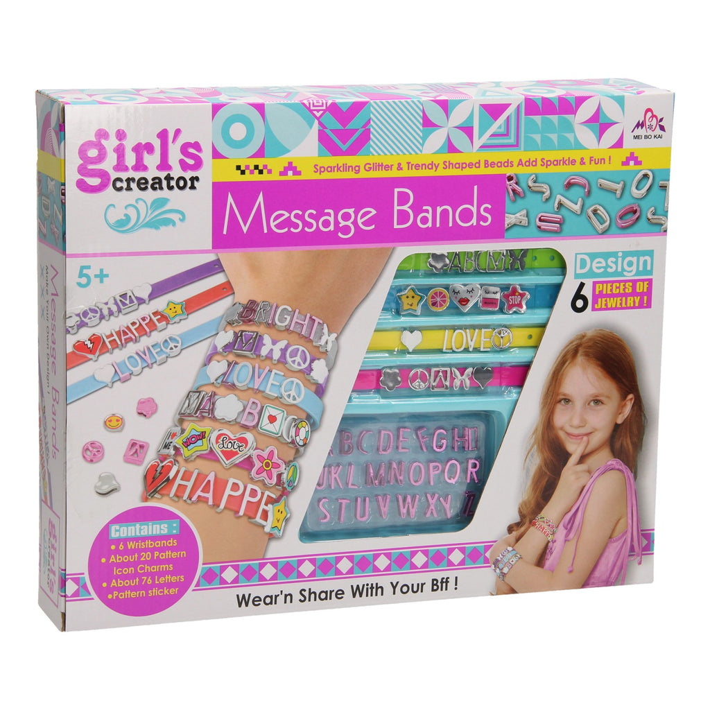 Maak je eigen Armbanden met Letters. In de set zitten 6 armbandjes, 20 bedeltjes en 76 letterkralen. Geschikt vanaf 5 jaar.