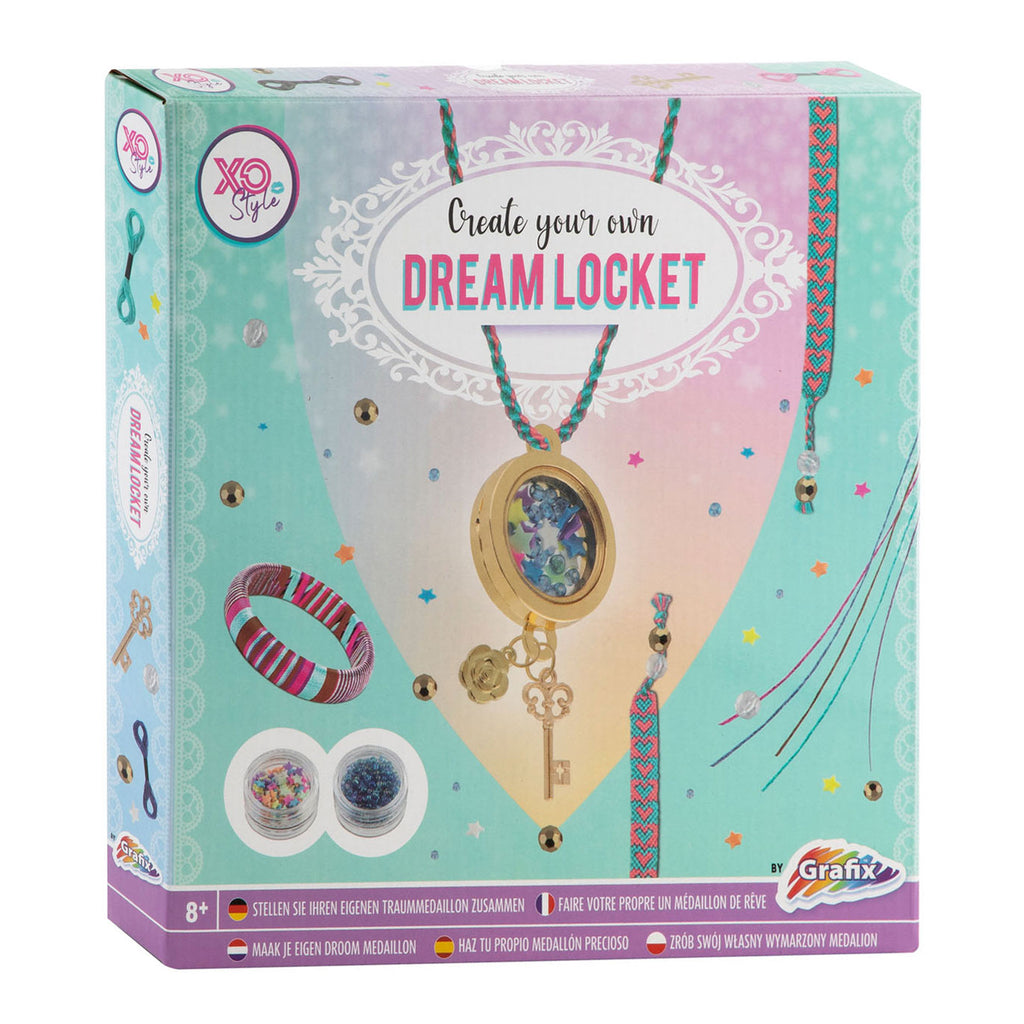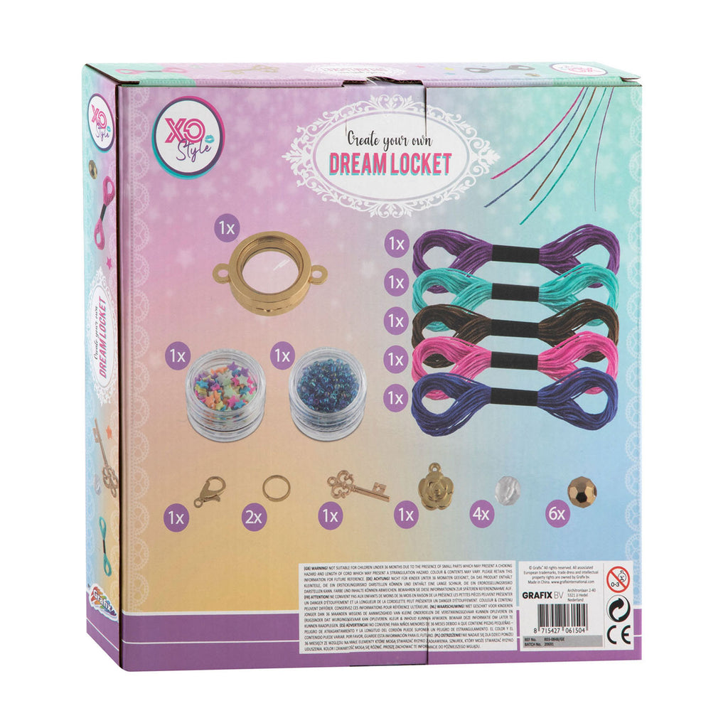 Maak je eigen medaillon en armbandjes met deze set. Inhoud: 1x medaillon, 5 kleuren koord, 2x kralen/confetti, 1 sluitinkje, 2x ringetje, sleutel en roos bedeltje, 10x kralen. Geschikt voor kinderen vanaf 8 jaar.