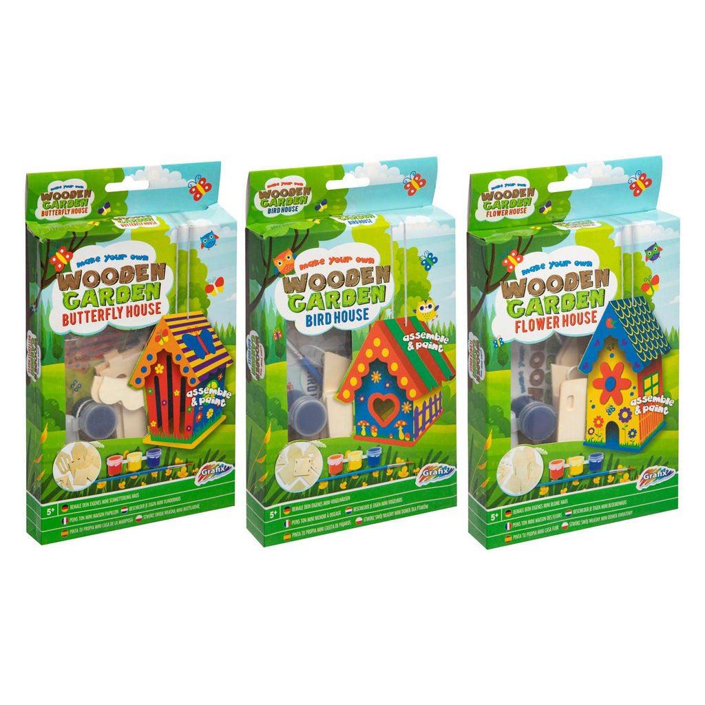 Knutselsetje voor het in elkaar zetten en versieren van je eigen vogelhuisje. Geschikt vanaf 5 jaar.