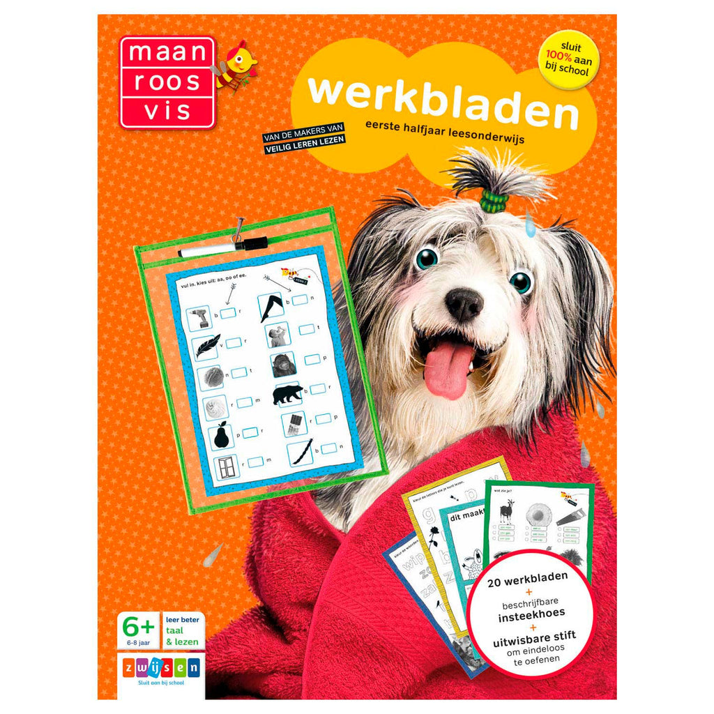 Steek de Maan Roos Vis - Werkbladen in de insteekhoes en ga aan de slag met de oefeningen! Op de 20 werkbladen oefenen kinderen spelenderwijs de leerstof uit het eerste halfjaar van groep 3. Niet alleen het leren lezen, ook de creativiteit wordt gestimuleerd. Kinderen leren bijvoorbeeld een weekplanner bijhouden, een tekening maken of invullen wat ze wel en niet leuk vinden. Nadat de Maan Roos Vis - Werkbladen Eerste Halfjaar 5-7 jaar zijn gemaakt, kan de insteekhoes worden opgehangen. Van de makers van Veilig Leren Lezen, sluit 100% aan bij school.