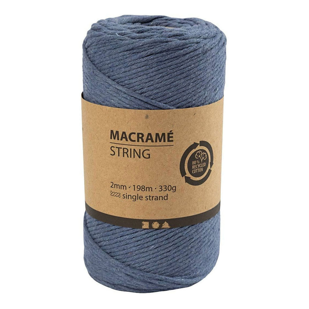 Enkeldraads macramégaren gemaakt van 80% gerecycled katoen en 20% polyester. Ideaal voor het knopen van kleinere projecten zoals dromenvangers, oorbellen, sleutelhangers etc. Enkeldraads macramé koord is ideaal voor projecten waarbij het koord een 'geborsteld' effect moet hebben.Macramé is een oude techniek waarbij je sterk garen of touw gebruikt om verschillende soorten knopen te knopen, die vervolgens verschillende patronen vormen. U kunt leren hoe je een aantal van deze knopen kunt maken met onze techniekvideo's. De activiteit vereist bijna geen gereedschap behalve het macramé-touw / -koord, hoewel het helpt om je knoopprojecten op een speciaal macramé-bord / klembord uit te voeren.