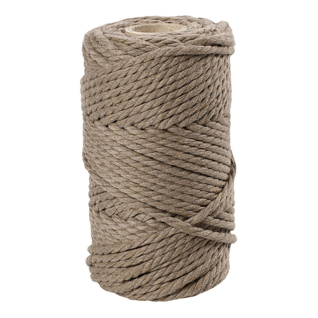 Drievoudig/3-draads macramégaren gemaakt van 80% gerecycled katoen en 20% polyester. Dit sterke macramé koord is ideaal voor het knopen van grotere projecten zoals wandkleden, hangende bloemenmanden, net-draagtassen etc..Macramé is een oude techniek waarbij je sterk garen of touw gebruikt om verschillende soorten knopen te knopen, die vervolgens verschillende patronen vormen. U kunt leren hoe je een aantal van deze knopen kunt maken met onze techniekvideo's. De activiteit vereist bijna geen gereedschap behalve het macramé-touw / -koord, hoewel het helpt om je knoopprojecten op een speciaal macramé-bord / klembord uit te voeren.