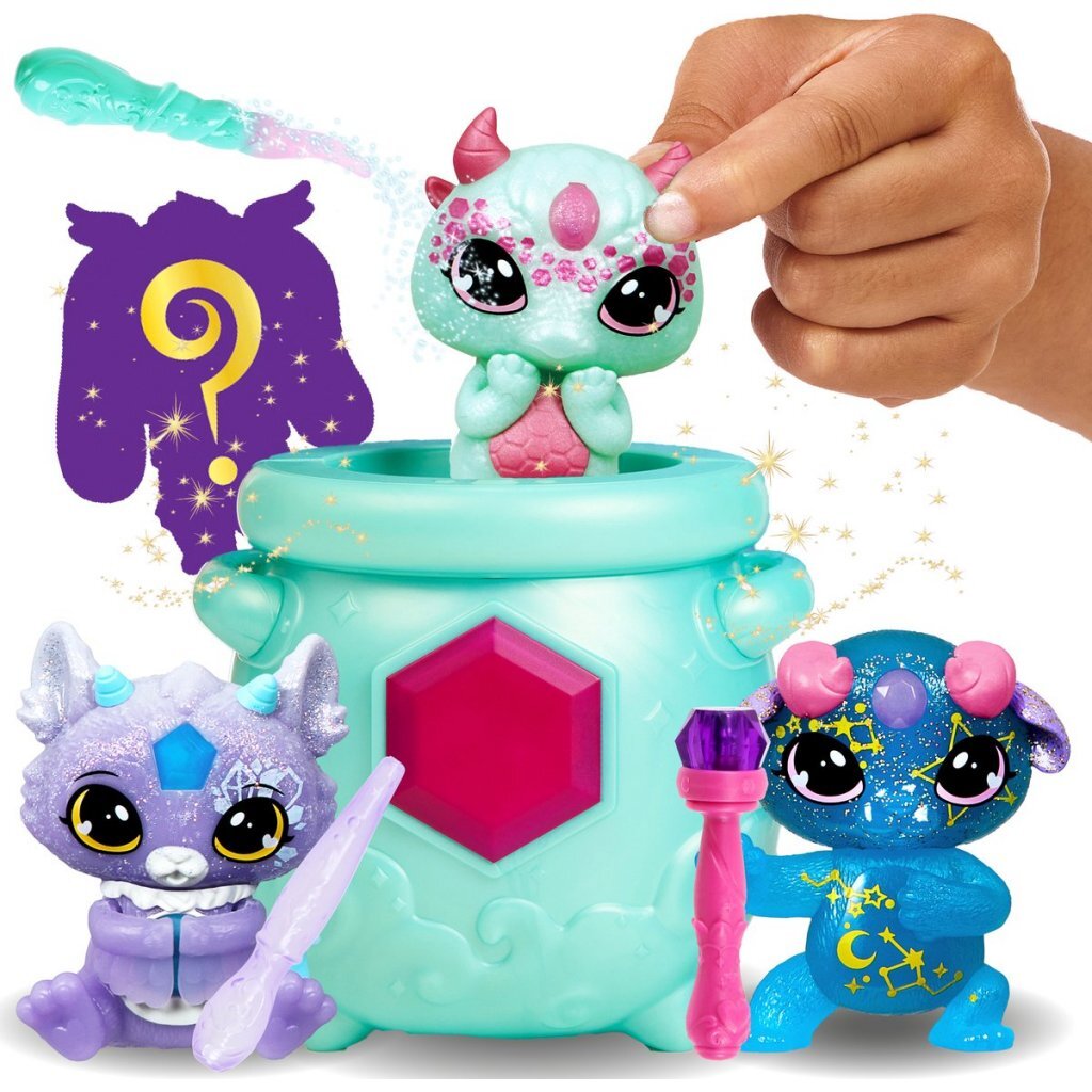 Ontdek de wereld van Magic Mixies Mixlings, 40 collectable figuurtjes in een Magische Mini Ketel. Elke Mixling heeft speciale krachten die geactiveerd worden met de magnetische, glow-in-the-dark-, of pipet-Toverstaf. Tik met de toverstaf op de edelsteen van de Mixling en hun kracht wordt onthuld Het Magisch Glinster Mega Pack bevat 3 glinsterende Mixlings met Magische Toverstaf én in de Magische Ketel bevindt zich nog 1 mysterieuze sprankelende Mixling! Scally is een Vlieger - tik met je toverstaf op zijn edelsteen en hij zal zijn prachtige vleugels onthullen. Nallo is een Tovenaar - gebruik je toverstaf om haar te zien oplichten! Kun jij ontdekken wat de krachten van de andere Mixlings zijn? Wrijf over de edelsteen op de Ketel om te ontdekken of er een normale, zeldzame, ultra-zeldzame of Limited Edition Mixling in de Ketel zit. Wie tover jij uit de Ketel tevoorschijn?