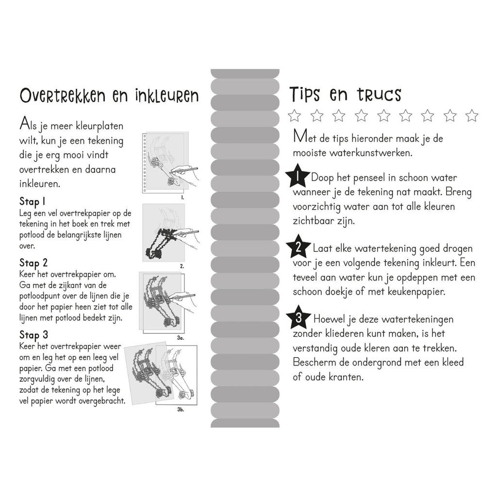 Maak vrolijk gekleurde tekeningen met dit magische waterkleurboek. Verf de tekeningen met water, laat ze opdrogen, de kleuren verdwijnen en verf ze opnieuw! In dit boek vind je heel veel tekeningen die je kunt inkleuren, leuke feitjes en lege bladzijden waarop je zelf de mooiste tekeningen kunt maken! Verschillende thema's beschikbaar!