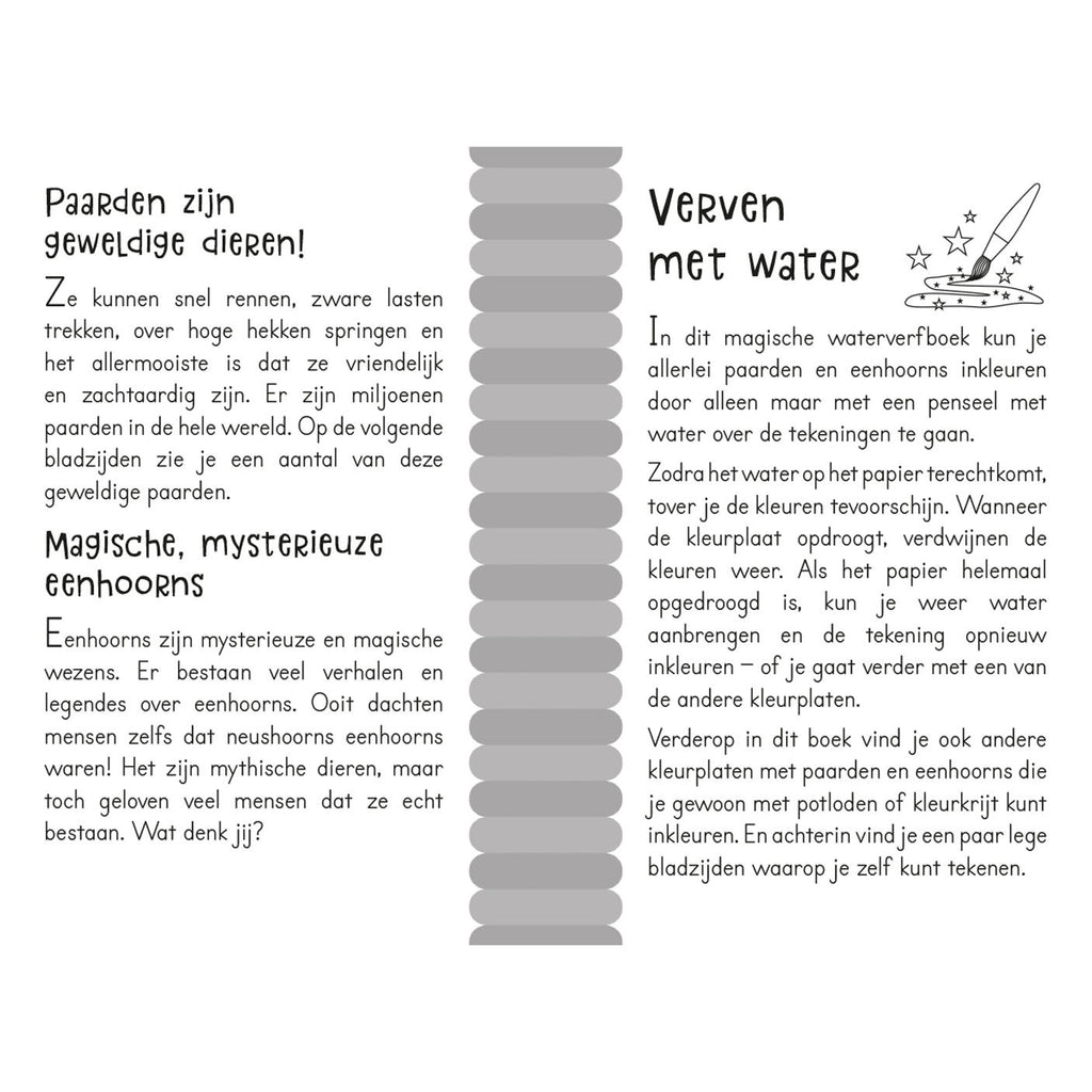 Maak vrolijk gekleurde tekeningen met dit magische waterkleurboek. Verf de tekeningen met water, laat ze opdrogen, de kleuren verdwijnen en verf ze opnieuw! In dit boek vind je heel veel tekeningen die je kunt inkleuren, leuke feitjes en lege bladzijden waarop je zelf de mooiste tekeningen kunt maken! Verschillende thema's beschikbaar!